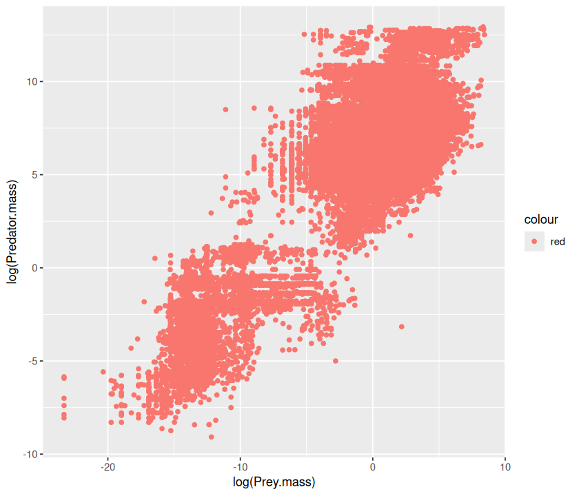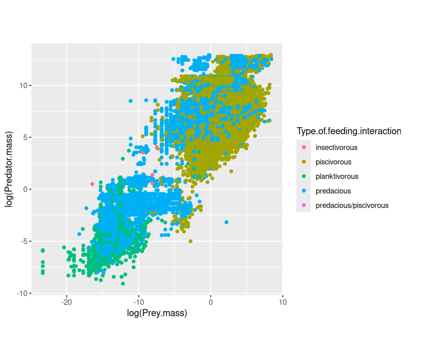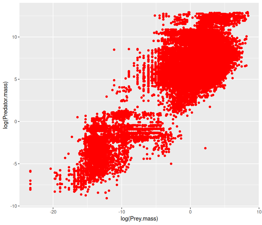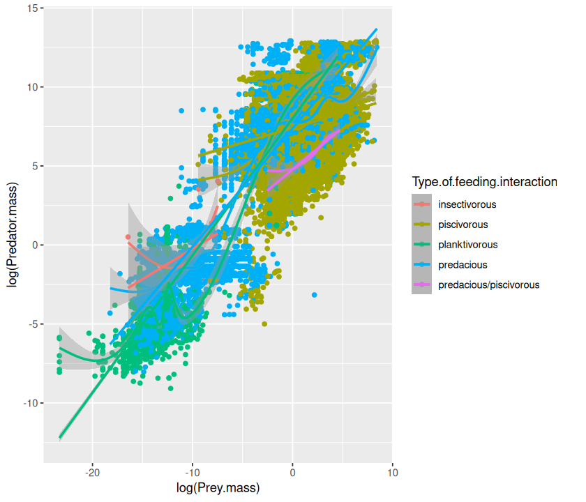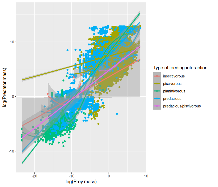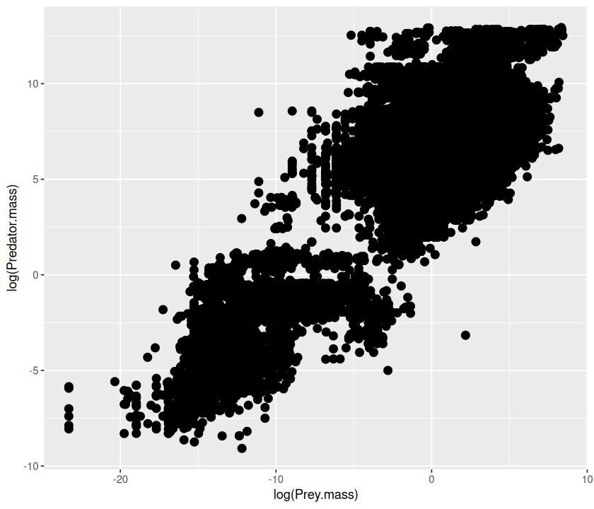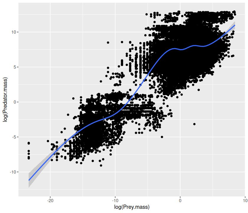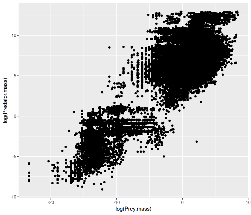 p <- ggplot(MyDF, aes(x = log(Predator.mass), y = log(Prey.mass),