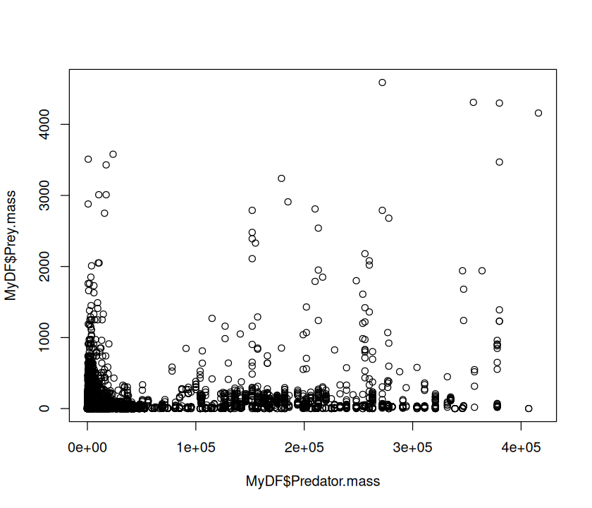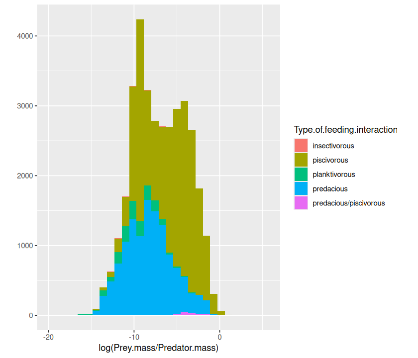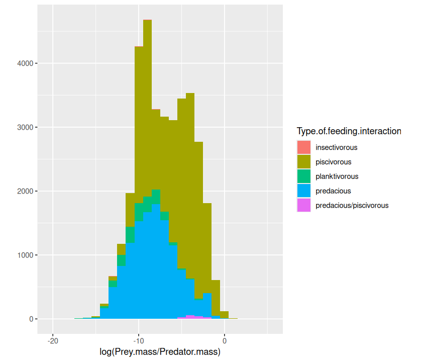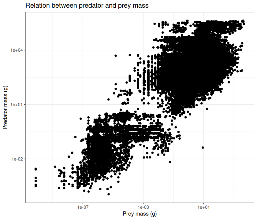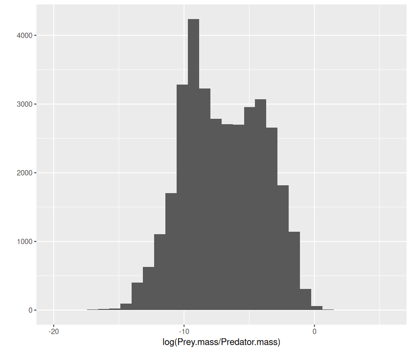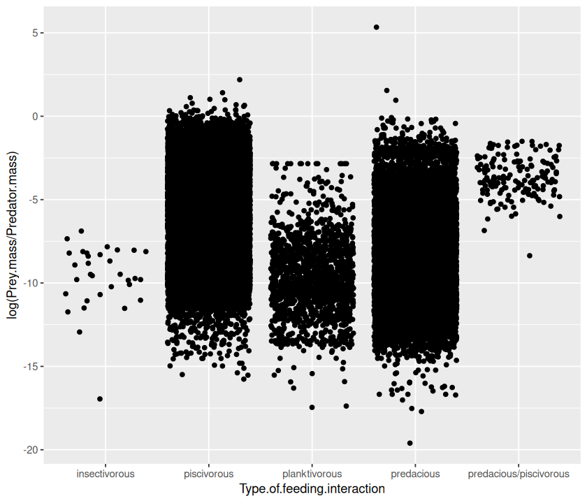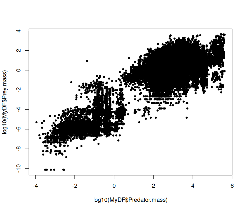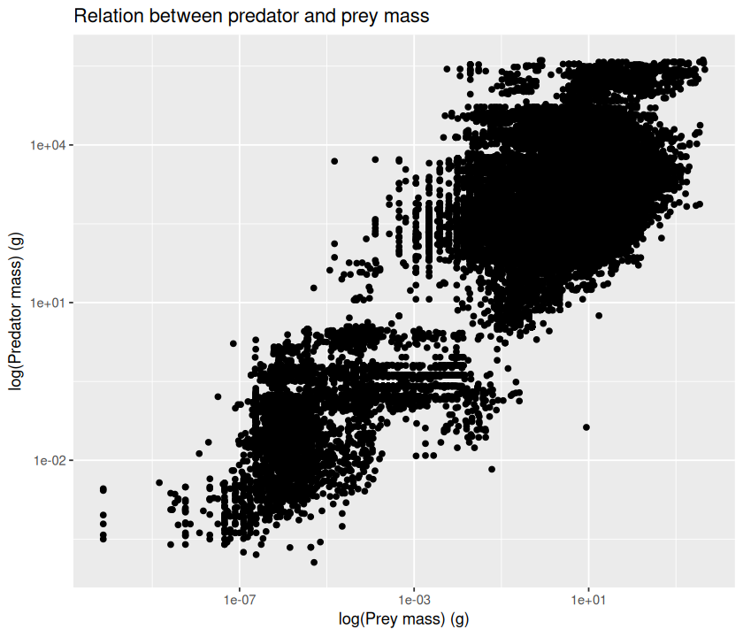 p <- ggplot(MyDF, aes(x = log(Predator.mass), y = log(Prey.mass),