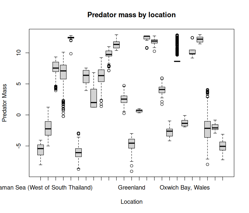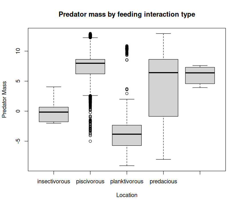 Do the same as (1) above, but the analysis this time should be separate by the dataset’s Location field. Call it PP_Regress_loc.R. No need to generate plots for this (just the analysis results to a .csv file), as a combination of Type.of.feeding.interaction, Predator.lifestage, and Location will be far too busy (faceting by three variables is too much to be meaningful)!