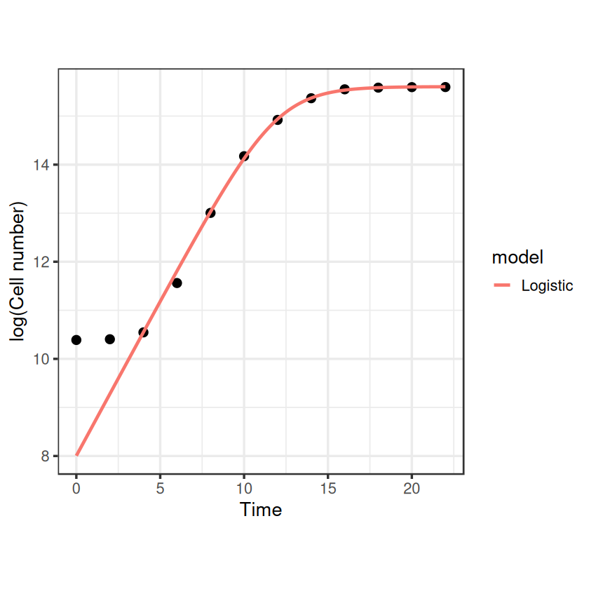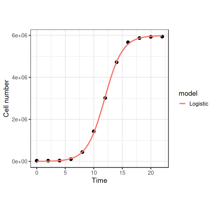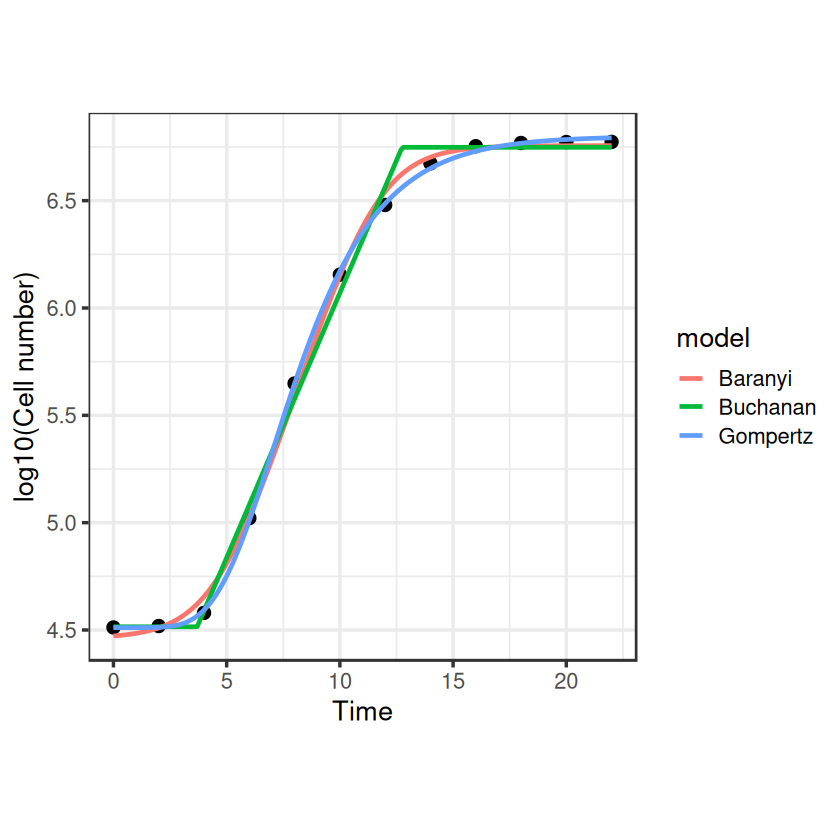 buchanan_points <- buchanan_model(t = timepoints, r_max = coef(fit_buchanan)["r_max"], N_max = coef(fit_buchanan)["N_max"], N_0 = coef(fit_buchanan)["N_0"], t_lag = coef(fit_buchanan)["t_lag"])
