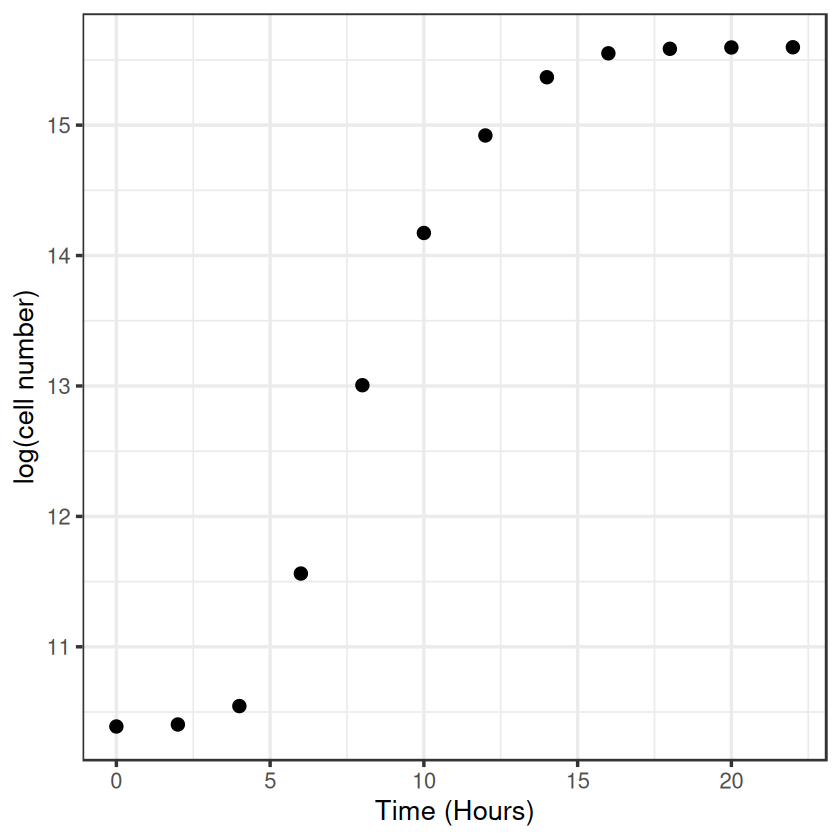 labs(x = "Time (Hours)", y = "log(cell number)") +